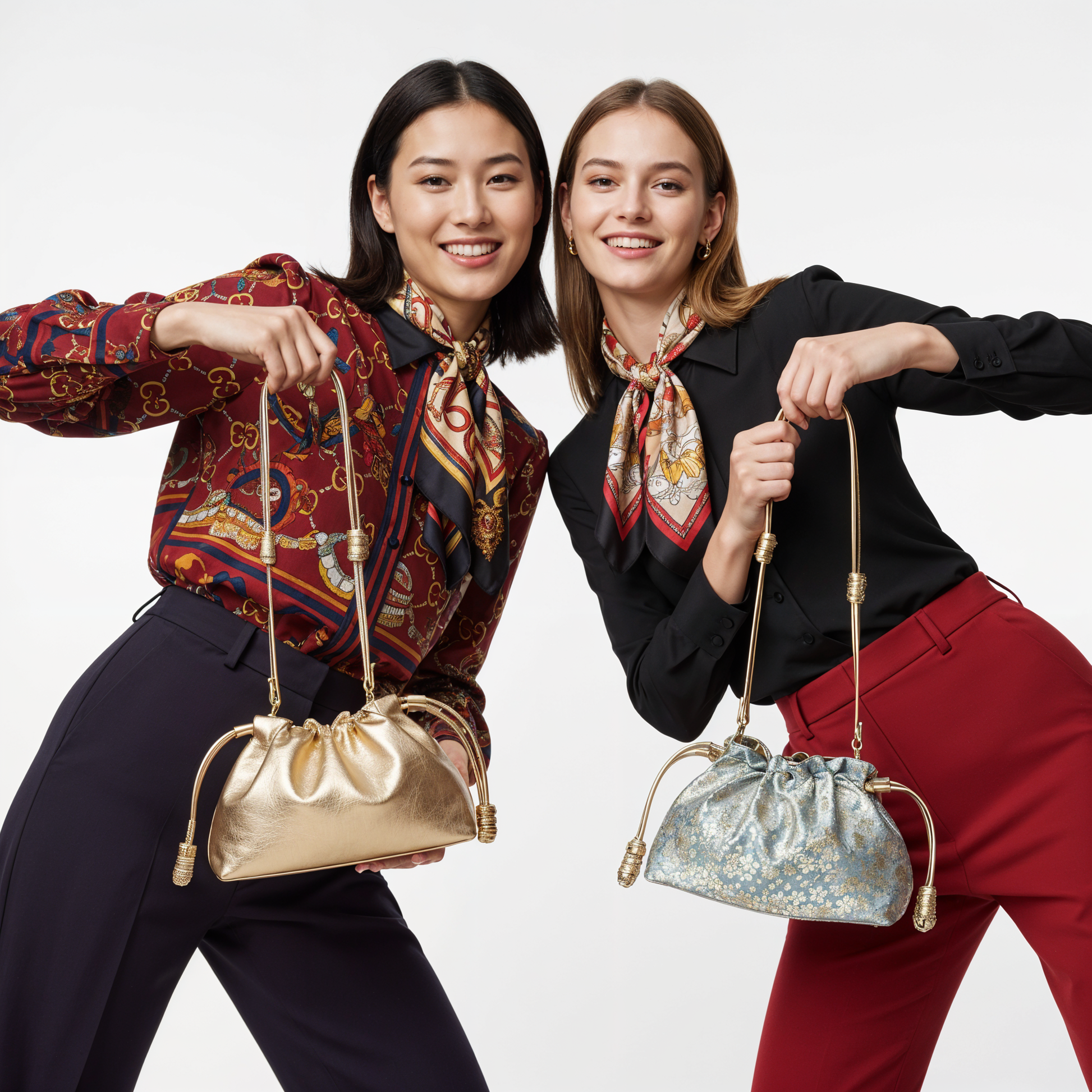 Slightly wider and lower than the classic all-fabric Kinchaku, this clutch maintains its cultural essence while offering a more modern silhouette — ideal for both day and evening wear.