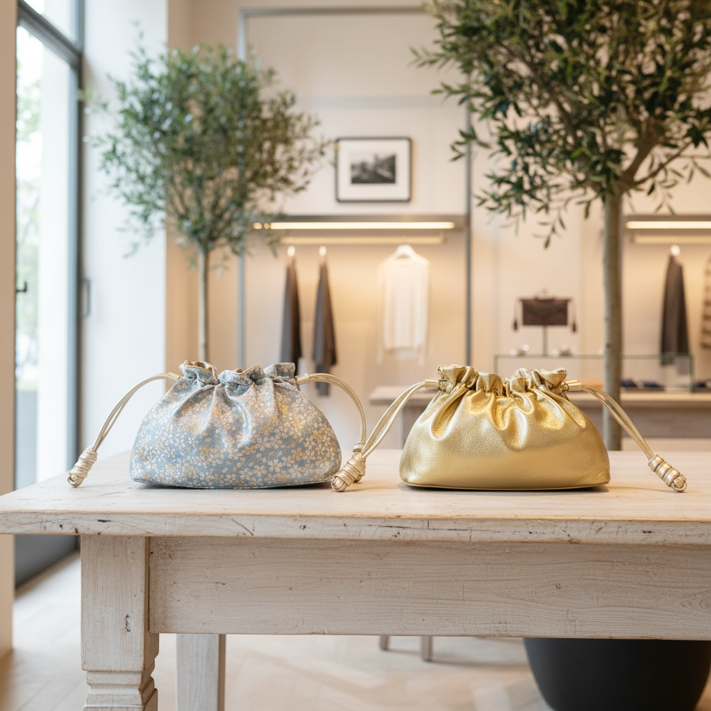 This reversible clutch is a refined reinterpretation of the traditional Japanese Kinchaku bag (巾着) — a drawstring pouch once used in daily life when kimono had no pockets. Historically carried by geishas to hold small treasures and personal items, the Kinchaku has long symbolized grace and understated beauty.